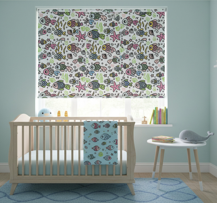Rullegardin barn med mønster av flerfargede fisker