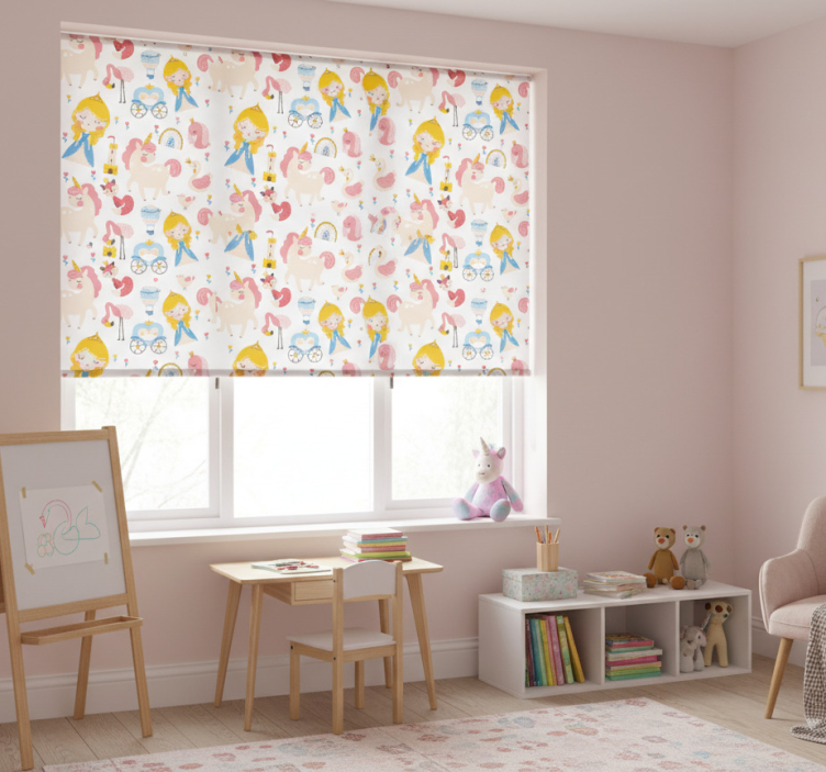 Rullegardin barn med tegneserieprinsesser og enhorn