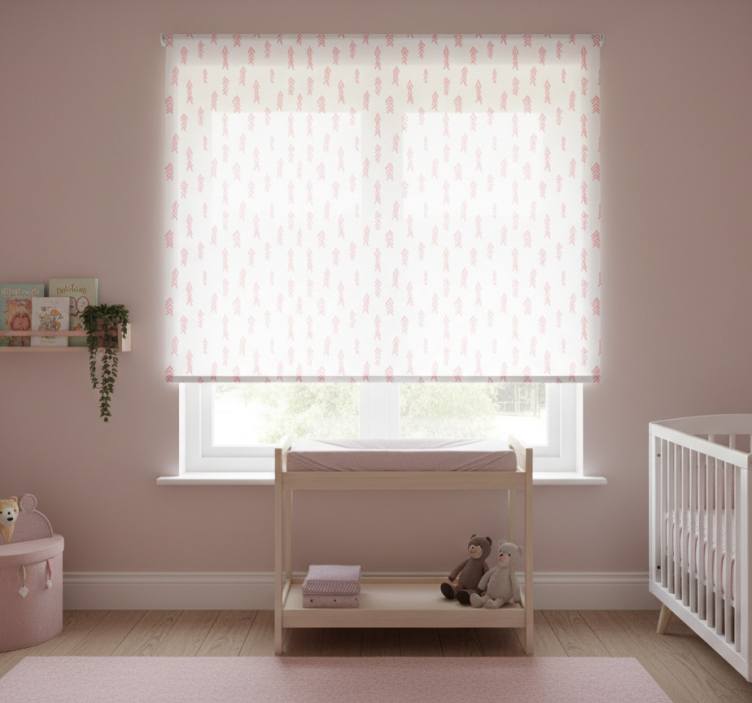 Rullegardin barn rosa pilmønster på hvit bakgrunn