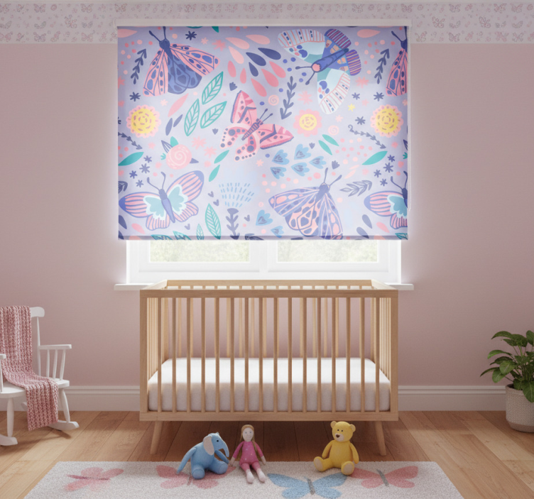 Rullegardin barn sommerfugler i lilla nyanser