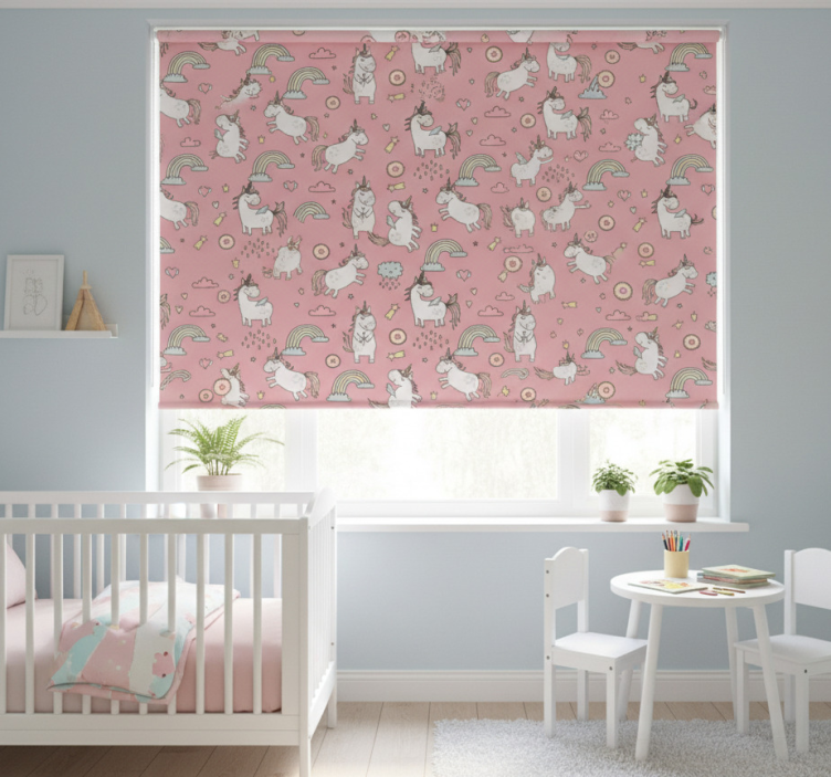 Rullegardin barn med rosa enhorn og regnbuer