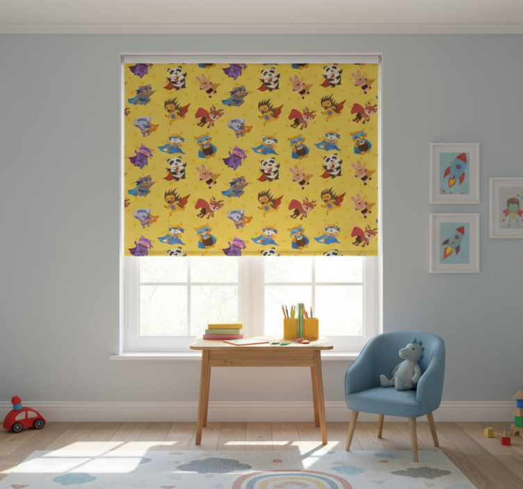 Rullegardin barn superheltkjæledyr mønster gul