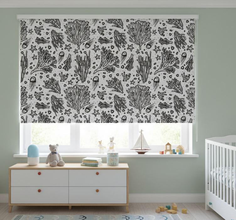 En Rullegardin barn svarte silhuetter av havdyr rullegardin barn er ikke bare en praktisk løsning for å skjerme mot sollys, men også en perfekt dekorasjon for barnerommet. Den gir et lekent preg og inspirerer til kreativitet og fantasi. Med sitt unike design kan den forvandle et vanlig rom til en undervannsoase, noe som gjør at både barn og voksne vil elske det!