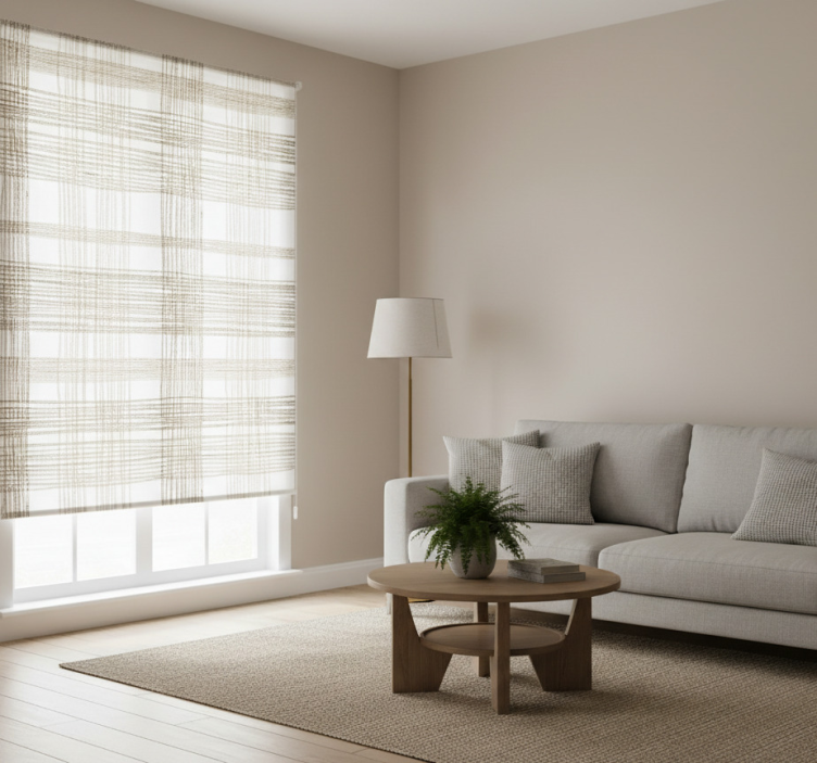 Referanse:: E8137Oppdag vårt vakre rullegardin beige med tynt jute beige motiv, som med sitt grafiske design tilfører en elegant touch til ethvert rom. Dette produktet kombinerer stil og funksjonalitet med muligheten for enkel montering og demontering. Den er laget for å beskytte rommet mot direkte sollys, gi personvern når den er senket, og lar deg regulere romtemperaturen. I tillegg er den enkel å rengjøre, noe som gjør den til et praktisk valg for enhver husstand!