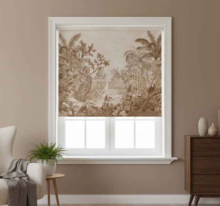 Referanse:: E8775Oppdag vår rullegardin beige med utsikt mot tropisk jungel, et unikt design som kombinerer stil og funksjonalitet! Denne rullegardinen gir et grafisk preg til ethvert rom, og skaper en drømmeaktig atmosfære med sin tropiske jungelmotiv. Med enkel montering og demontering, samt muligheten for å tilpasse størrelsen, gjør dette produktet det enkelt å skape et personlig preg i hjemmet ditt.