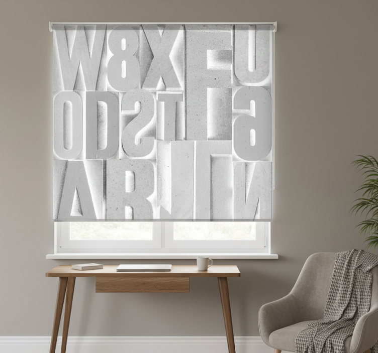 Rullegardin grå 3d grå bokstaver rullegardin grå er perfekt for å forbedre innredningen i hjemmet ditt! Den grå fargen gir en moderne og elegant look som passer inn i de fleste interiørstiler. Med sine tilpassbare mål kan du enkelt finne den rette størrelsen for vinduene dine. Dette produktet gir ikke bare estetisk verdi, men også funksjonalitet ved å regulere romtemperaturen og skape et behagelig inneklima. La stilen skinne gjennom med denne fantastiske rullegardinen!