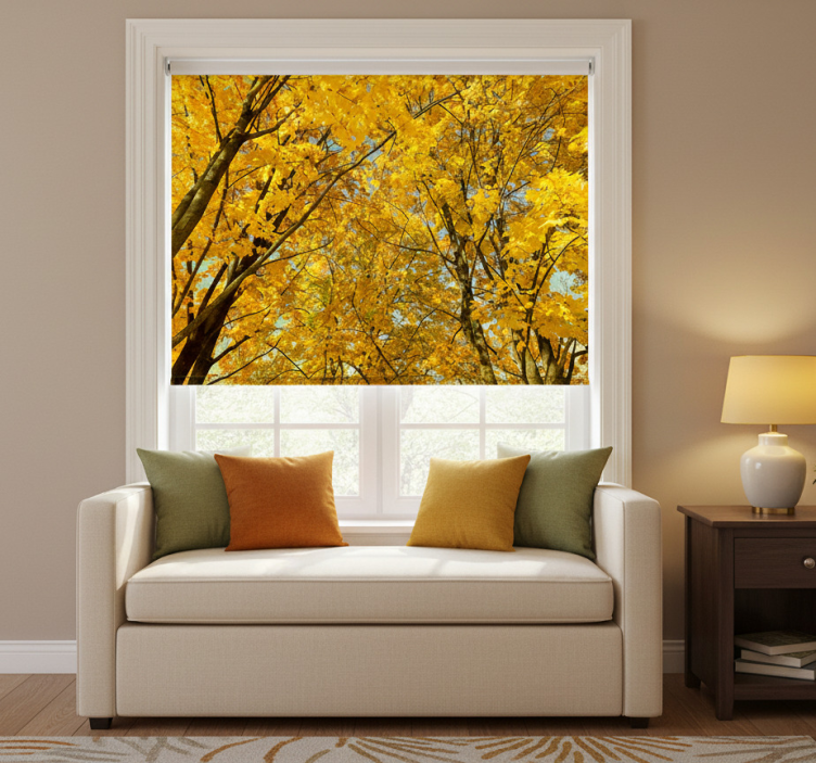 Den Rullegardin gul høstblader rullegardin gul er ikke bare et praktisk element; den fungerer også som en stilfull dekorasjon. Med sin livlige farge og vakre design, kan den forvandle et vanlig rom til et koselig og innbydende sted. Denne rullegardinen lar deg skape en varm atmosfære som er perfekt for både avslapning og sosialt samvær!