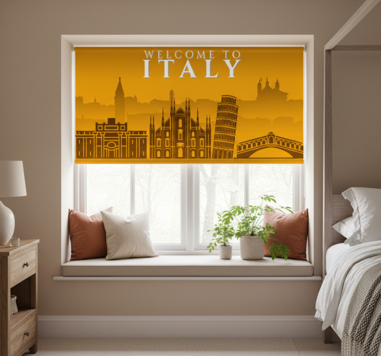 Den Rullegardin gul skyline italia rullegardin gul gir en unik stil til ethvert rom. Den gule fargen lyser opp plassen og skaper en varm atmosfære, perfekt for stuen, soverommet eller kontoret. Designet forbedrer ikke bare rommets estetikk, men bidrar også til en komfortabel og innbydende stemning. La denne rullegardinen bli et fokuspunkt i rommet!