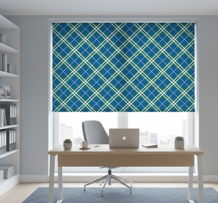 Rullegardin hjemmekontor blå og grønn skotsk tartan