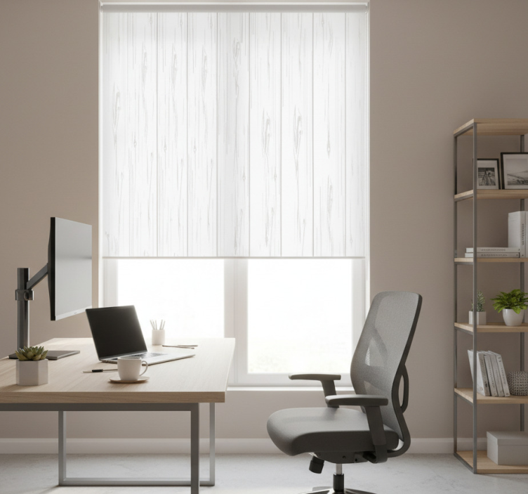 Rullegardin hjemmekontor hvit trestruktur moderne rustikk