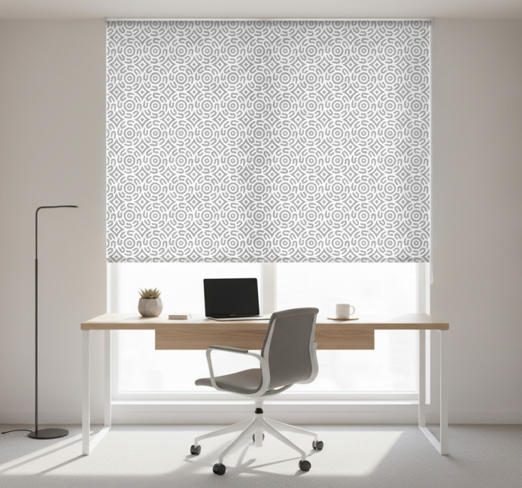 Rullegardin hjemmekontor hvitt geometrisk mønster med sirkler