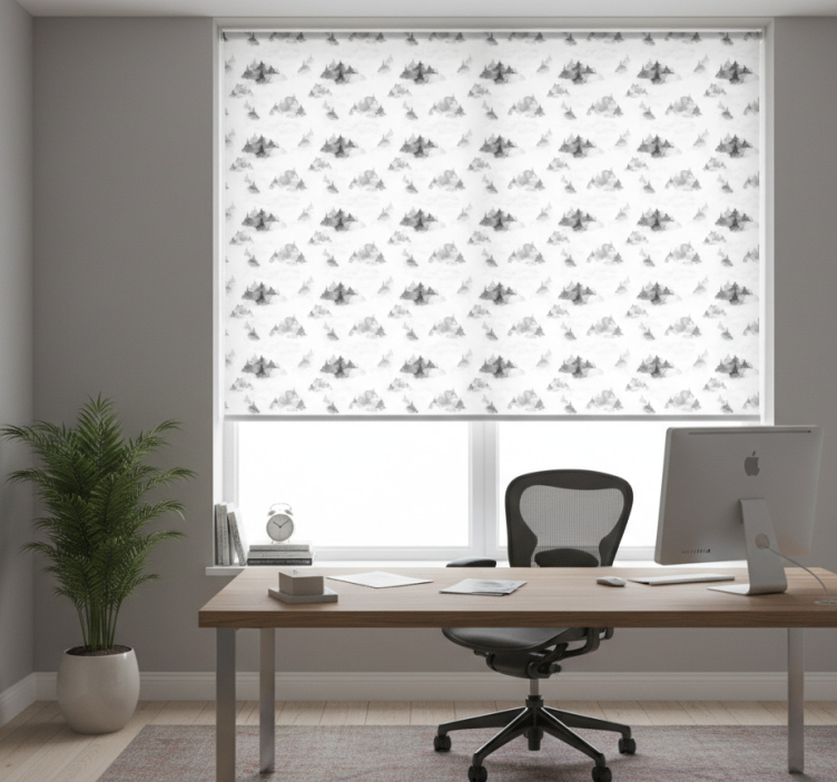 Rullegardin hjemmekontor mørk skog silhuett