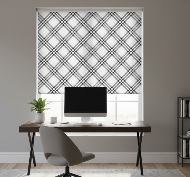 Rullegardin hjemmekontor svart og hvit skotsk tartan