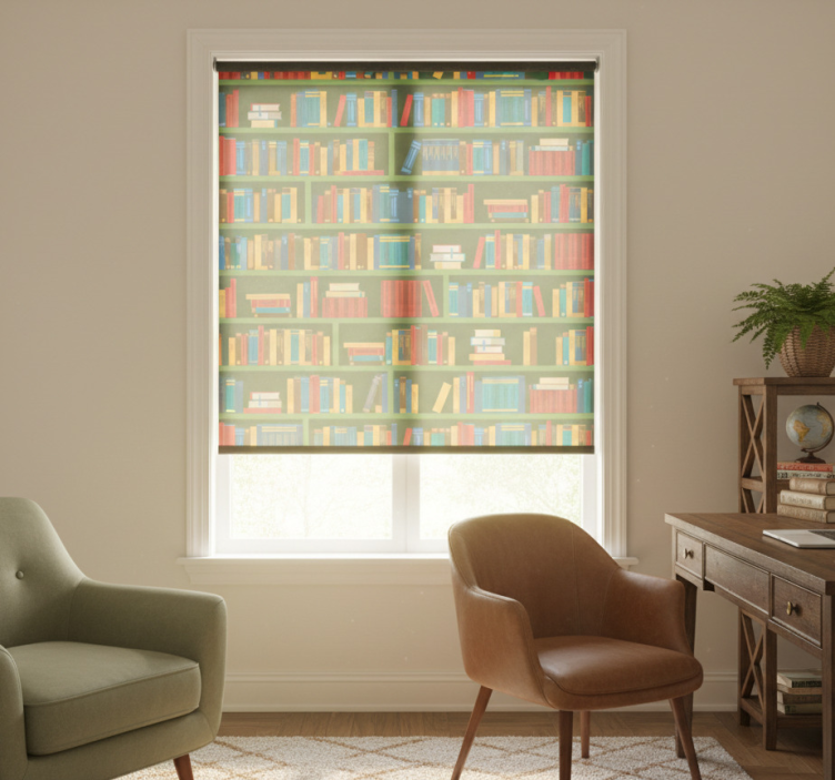 Rullegardin hjemmekontor vintage grønn bibliotek