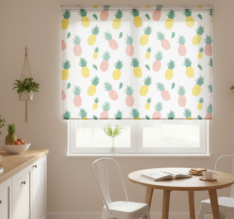 Et rullegardin kjøkken ananas mønster fruktdesign rullegardin kjøkken er den perfekte måten å lyse opp hjemmet ditt på! Den friske fruktedesignen tilfører farge og liv til rommet, og skaper en innbydende stemning for både familie og gjester. Dette produktet gir ikke bare estetisk glede, men også funksjonalitet, ved å beskytte mot direkte sollys og gi personvern når den er senket. La kjøkkenet ditt bli en oase av stil og komfort!