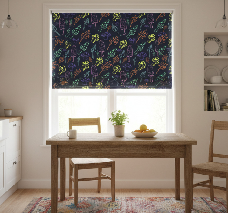Referanse:: E6383Oppdag vår fantastiske rullegardin kjøkken fargerike soppmønster, hvor grafisk design møter funksjonalitet! Denne rullegardinen har et livlig soppmønster som vil tilføre en leken og fargerik atmosfære til kjøkkenet ditt. Den er enkel å rengjøre, kan monteres med bare 2 klikk, og gir deg muligheten til å regulere romtemperaturen og beskytte mot direkte sollys. Følelsen av privatliv er også ivaretatt, samtidig som du kan se uten å bli sett!