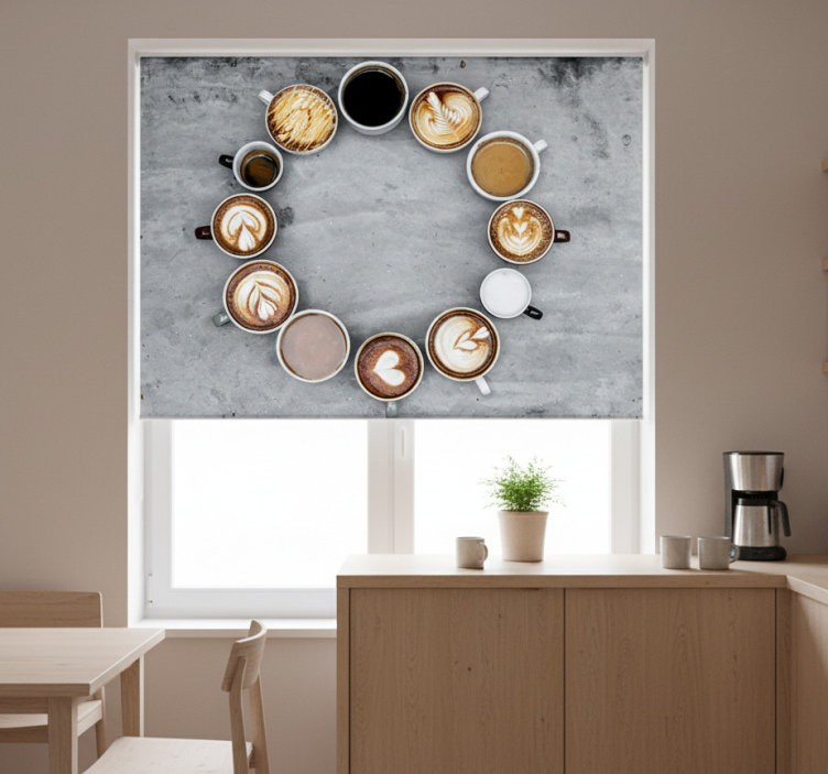 Rullegardin kjøkken forskjellige kaffekopper i sirkel