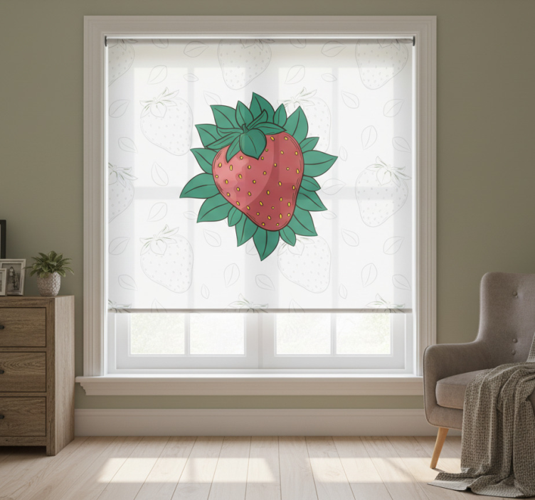 Med rullegardin kjøkken friske saftige jordbær grønne blader rullegardin kjøkken kan du enkelt forvandle kjøkkenet ditt til et friskt og inspirerende rom. Denne rullegardinen bringer naturens skjønnhet inn i hjemmet ditt, og gir en koselig atmosfære for både matlaging og samvær. Den unike designen gir ikke bare et estetisk løft, men bidrar også til en behagelig stemning som vil glede både deg og dine gjester. La kjøkkenet skinne med livlige farger og et naturlig preg!