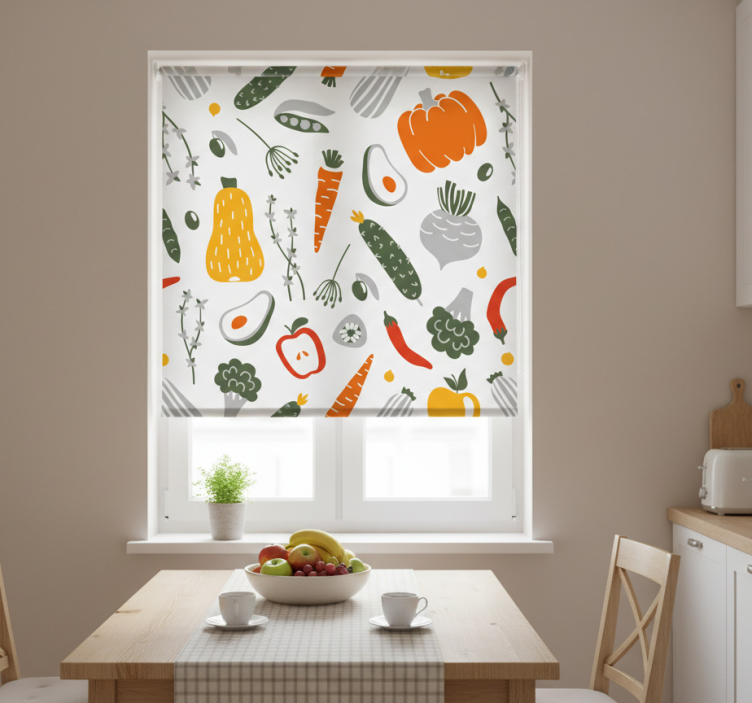 En Rullegardin kjøkken frukt og grønnsak kolleksjon rullegardin kjøkken er ikke bare en funksjonell løsning, men også en fantastisk dekorativ detalj. Den livlige grafikken tilfører et lekent preg som gjør kjøkkenet mer innbydende. Tenk deg å lage mat under en rullegardin som inspirerer til kreativitet og glede! Dette produktet er perfekt for deg som ønsker å skape en koselig atmosfære samtidig som du opprettholder et stilrent uttrykk. Gjør rommet ditt til et sted hvor både smak og estetikk får blomstre!