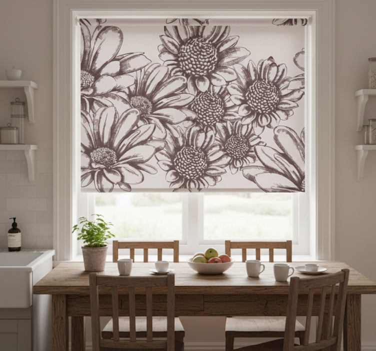 Med vår rullegardin kjøkken gamle solsikker rullegardin kjøkken kan du forvandle ditt kjøkken til et lysende og inspirerende rom. Solsikkemotivet tilfører en naturlig skjønnhet, og skaper en varm atmosfære som gjør matlagingen til en glede! Ikke bare er den estetisk tiltalende, men den gir også beskyttelse mot sollys og gir deg ønsket privatliv. La ditt kjøkken stråle med denne fantastiske dekorasjonen!