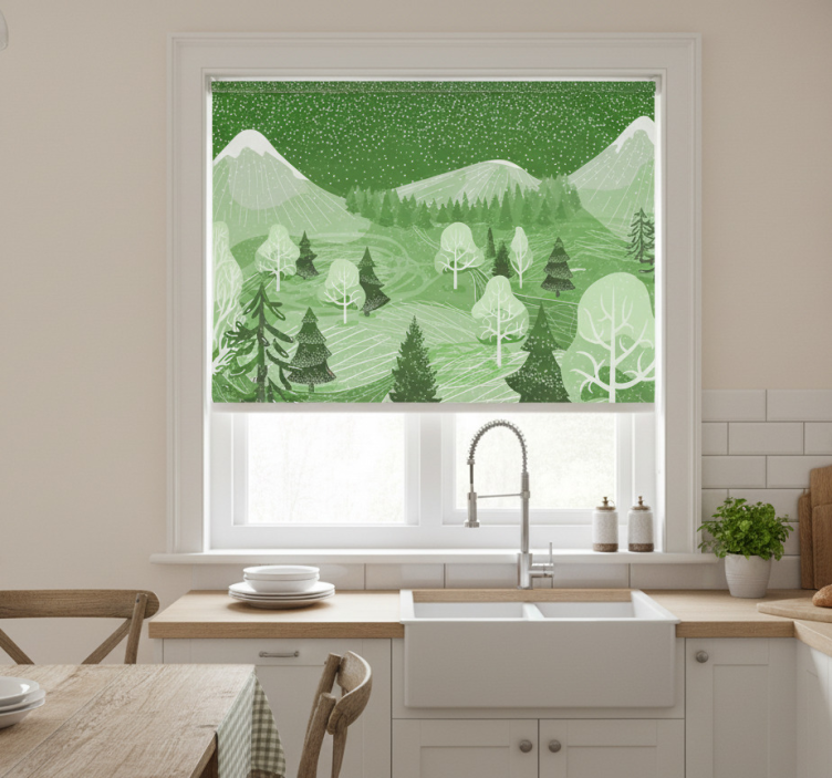 En rullegardin kjøkken grønn vintage skog rullegardin kjøkken er mer enn bare en praktisk løsning. Den tilfører et estetisk løft til rommet og skaper en koselig atmosfære. Den vintage stilen gir et tidløst preg som vil imponere gjestene dine. La naturens skjønnhet inspirere deg og gjør kjøkkenet ditt til et sted hvor man ønsker å tilbringe tid. Med denne rullegardinen kan du skape et harmonisk rom som både er funksjonelt og vakkert!