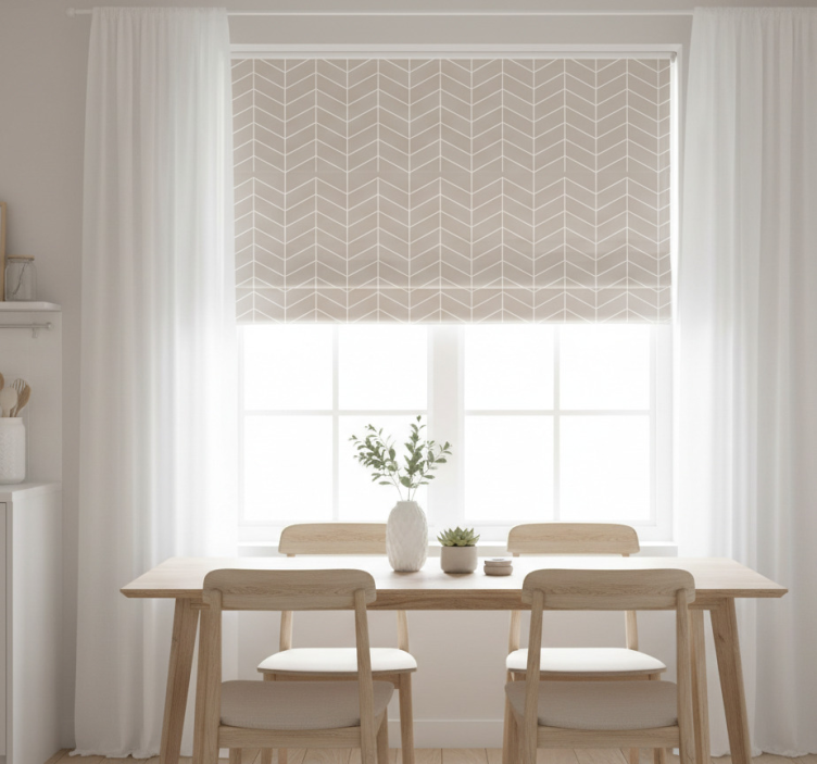 En Rullegardin kjøkken i skandinavisk stil beige og hvit rullegardin kjøkken er ikke bare praktisk, men fungerer også som et utmerket dekorativt element. Den stilige designen komplementerer moderne interiør og gir en følelse av ro og harmoni. Ved å inkludere denne rullegardinen i ditt kjøkken, skaper du et elegant miljø som inviterer til både matlaging og samvær. La deg inspirere av den skandinaviske stilen og se hvordan denne gardinen kan forvandle rommet ditt!