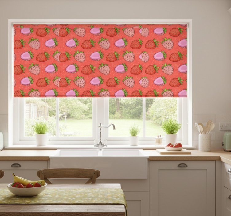 Referanse:: E6308Oppdag Rullegardin kjøkken jordbærglede, en fest for øynene med sitt livlige og grafiske design som bringer en herlig atmosfære til kjøkkenet ditt. Med en kombinasjon av enkel montering, lett rengjøring og muligheten for tilpasning, er denne rullegardinen både praktisk og stilfull. Den gir rommet en ny dimensjon, samtidig som den beskytter mot direkte sollys og gir deg personvern når den er senket.