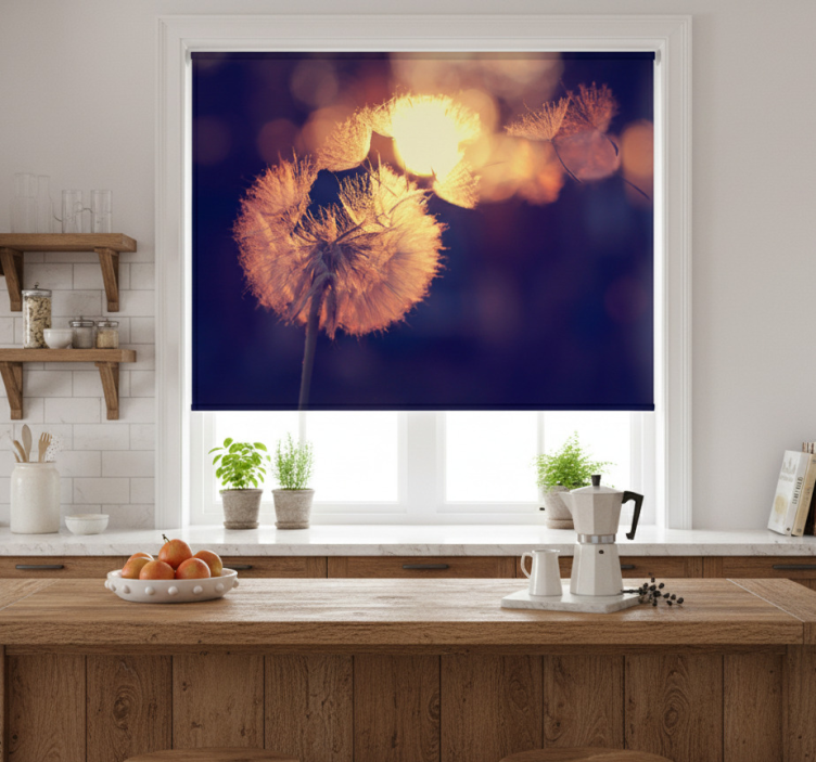 Med rullegardin kjøkken med løvetann design kan du forvandle ditt kjøkken til et stilfullt og koselig rom! Denne rullegardinen gir ikke bare et estetisk uttrykk, men den skaper også en atmosfære av ro og harmoni. Den unike designen med løvetannmønsteret gir liv til veggene, samtidig som den sørger for nødvendig personvern når den er senket. Gjør kjøkkenet til et sted hvor du virkelig trives!