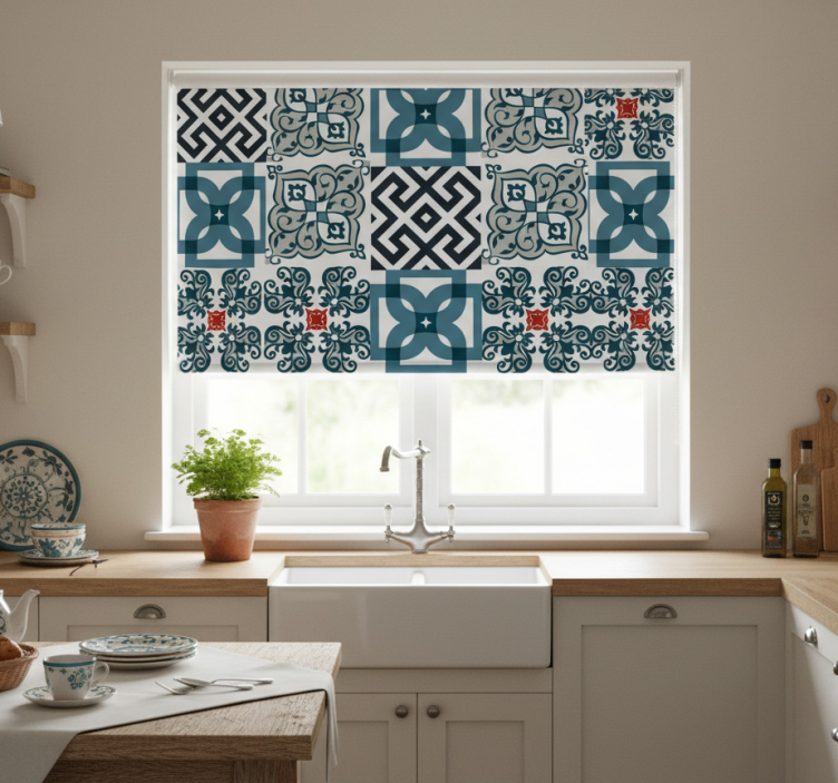 Vår rullegardin kjøkken portugisiske vintagefliser er ikke bare en praktisk løsning, men også en stilfull dekorasjon! Den tilfører en unik karakter til rommet, og dens vintage-inspirerte design vil garantert fange oppmerksomheten til alle som besøker deg. Ved å bruke denne rullegardinen kan du enkelt forvandle kjøkkenet ditt til et koselig og innbydende rom. Slipp inn naturlig lys samtidig som du får et flott design!
