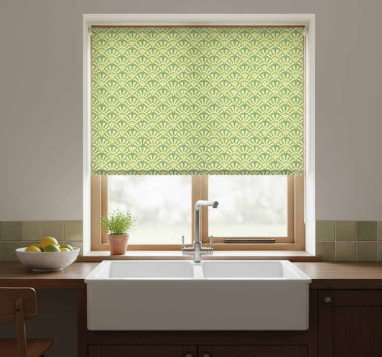 Rullegardin kjøkken sitronfarge 70-talls mønster