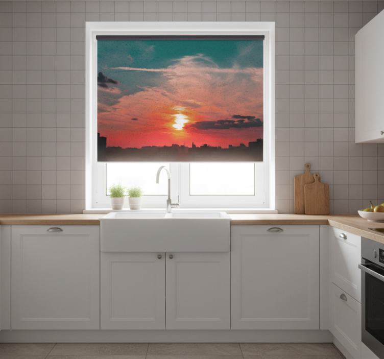 En Rullegardin kjøkken sky av elegante farger rullegardin kjøkken er mer enn bare en praktisk løsning for solbeskyttelse; det er et stilig element som lyser opp ethvert rom. Den forbedrer dekorasjonen av kjøkkenet ditt og gir en følelse av luksus og stil. Med muligheten til å tilpasse gardinen i tre forskjellige teksturer for å passe til ditt behov for lys og privatliv, blir det enkelt å skape et personlig preg. Gjør ditt kjøkken til et inspirerende sted!