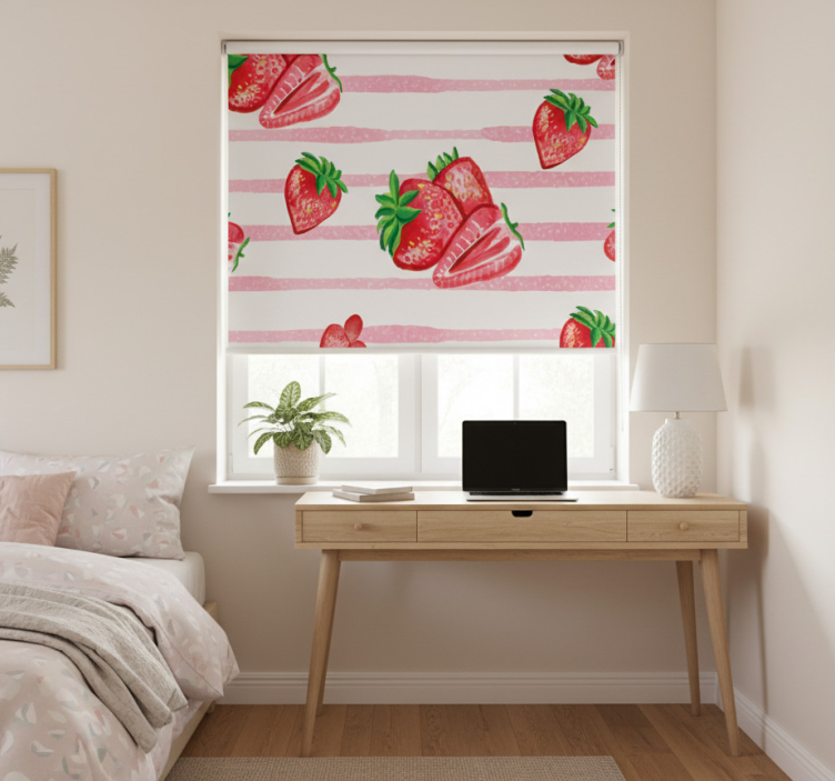 Referanse:: E8408Oppdag den fantastiske rullegardin kjøkken sømløse jordbær på stripete bakgrunn, som kombinerer et lekent design med funksjonalitet! Denne rullegardinen har en grafisk stil med søte jordbær mot en strålende stripete bakgrunn, noe som gir en frisk og livlig atmosfære til kjøkkenet. Den er enkel å rengjøre og demontere med bare to klikk, noe som gjør det praktisk å holde vinduet og omgivelsene rene. I tillegg gir den beskyttelse mot direkte sollys og kan senkes for å gi deg ønsket personvern, samtidig som den lar romtemperaturen reguleres.