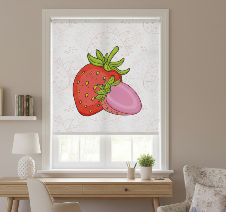 Referanse:: E8423Oppdag den fantastiske Rullegardin kjøkken søte røde og rosa jordbær, som bringer en leken og livlig atmosfære til kjøkkenet! Med sitt grafiske design av søte røde og rosa jordbær, gir denne rullegardinen et friskt preg til rommet. Den er ikke bare vakker men også praktisk, da den beskytter mot direkte sollys og forbedrer rommets dekorasjon.