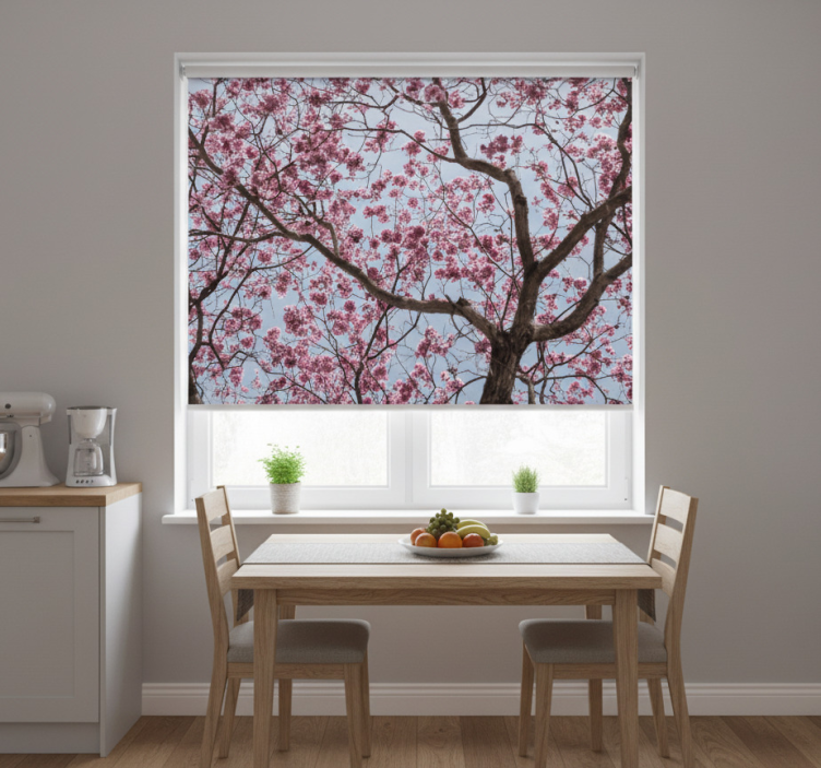 Rullegardin kjøkken vakre rosa kirsebærblomster