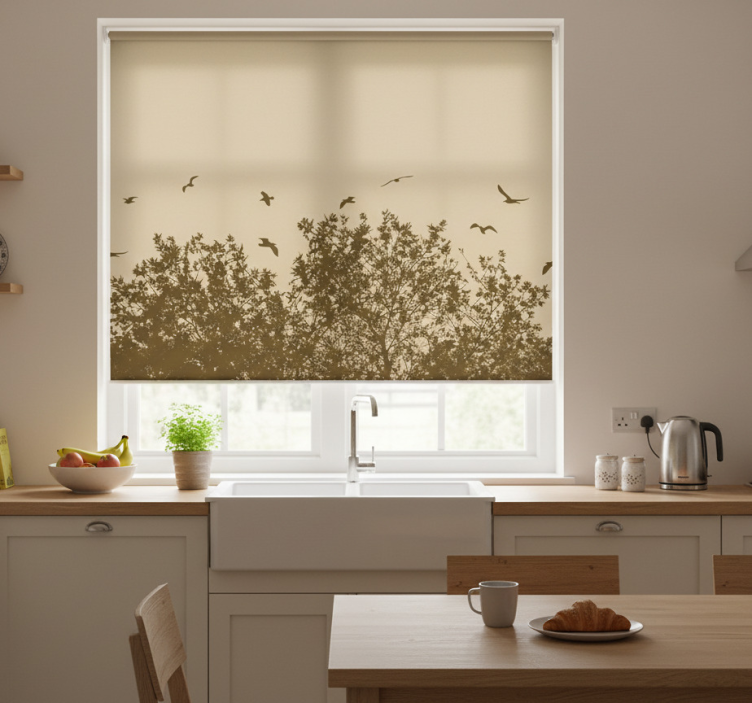Rullegardin kjøkken vårblomster med fugler