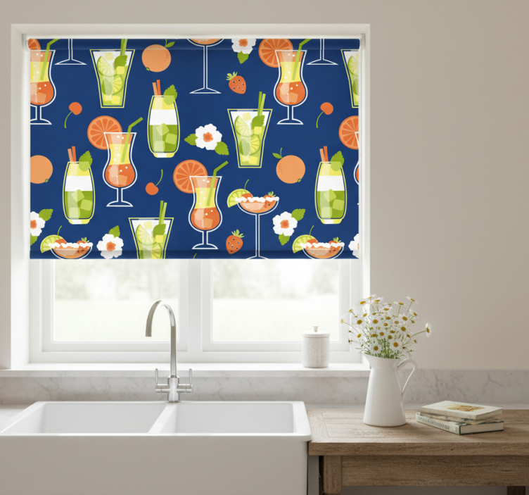 Referanse:: E6498Oppdag den unike sjarmen med vår Rullegardin kjøkken vintage med cocktailer, som er designet for å gi et grafisk og stilrent utseende til ditt kjøkken. Denne rullegardinen har et fargerikt design med lekne cocktailmotiver som gir en livlig atmosfære. Med sin enkel montering med 2 klikk og enkel rengjøring er den perfekt for moderne hjem som ønsker både stil og funksjonalitet!