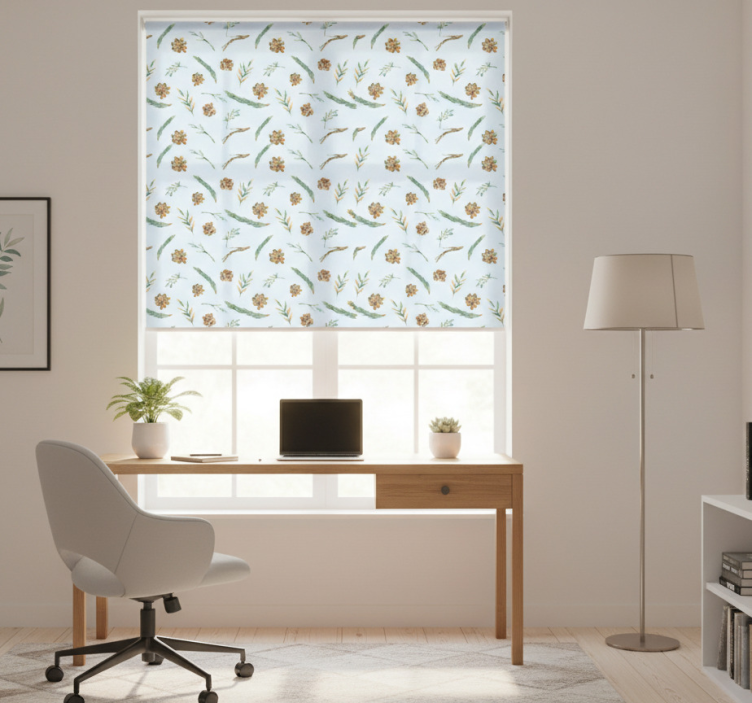 En rullegardin kontor akvarell blomster blå rullegardin kontor er ikke bare en praktisk løsning for å kontrollere lys og temperatur, men også en fantastisk dekorasjon for rommet. Den livlige blomsterdesignen tilfører et kunstnerisk preg, som kan løfte stemningen i ethvert arbeidsmiljø. Med muligheten for å tilpasse målene, kan denne rullegardinen enkelt integreres i ulike rom og stiler, og skaper et harmonisk og inspirerende arbeidsmiljø!