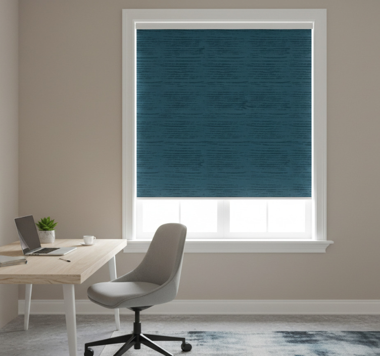 En Rullegardin kontor blått mønster i 'restore' stil rullegardin kontor tilfører ikke bare et estetisk preg til rommet, men skaper også en behagelig og inspirerende arbeidsplass. Den beskytter mot direkte sollys, gir personvern når den er senket, og regulerer romtemperaturen. Den er mer enn bare en praktisk løsning; den er en del av kontorets stil og kan virkelig løfte interiøret!