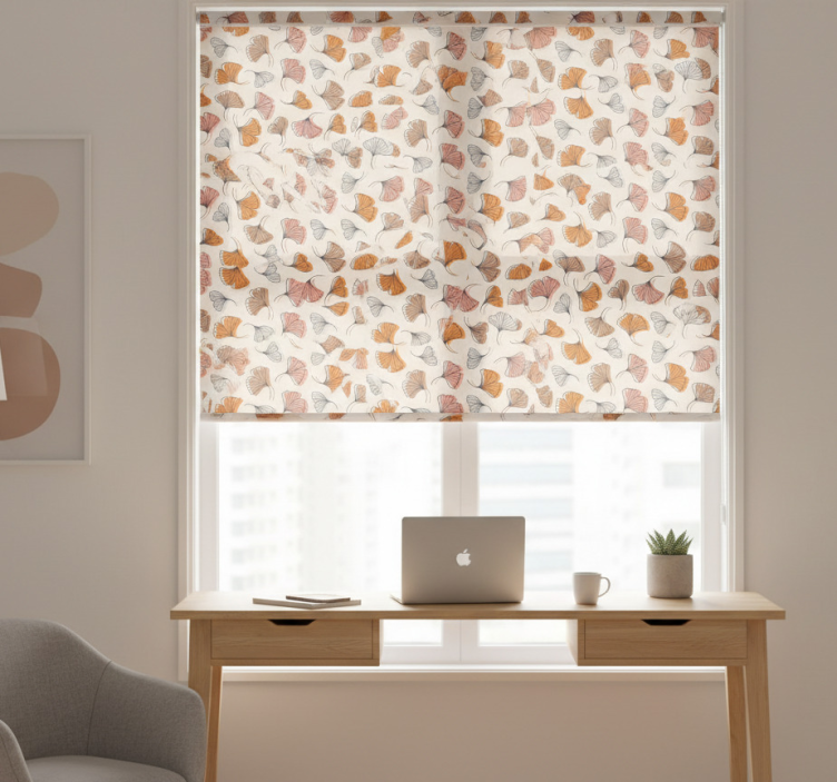 En Rullegardin kontor ginkgo-blader håndtegnet rullegardin kontor gir deg muligheten til å forvandle et vanlig kontor til et kreativt fristed. Det håndtegnede designet tilfører en organisk og elegant følelse, som inspirerer til produktivitet og kreativitet. Den er ikke bare en praktisk løsning for å regulere lys og personvern, men også en dekorativ detalj som gir liv til rommet. Med sitt unike uttrykk, kan denne rullegardinen bli et samtaleemne og et kunstverk i seg selv!