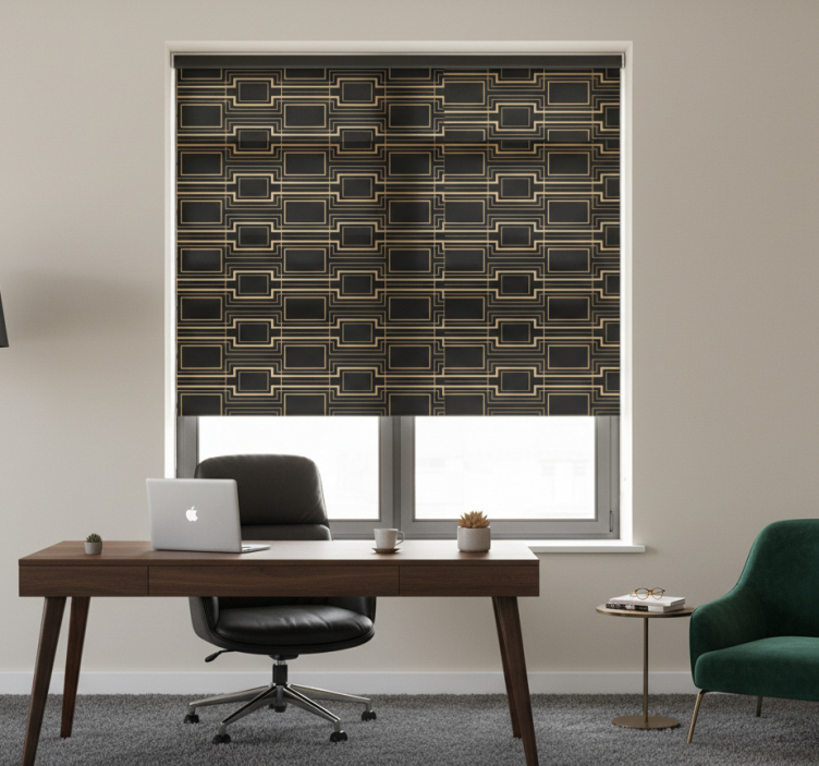 Rullegardin kontor gullrammer kunstdekor mønster