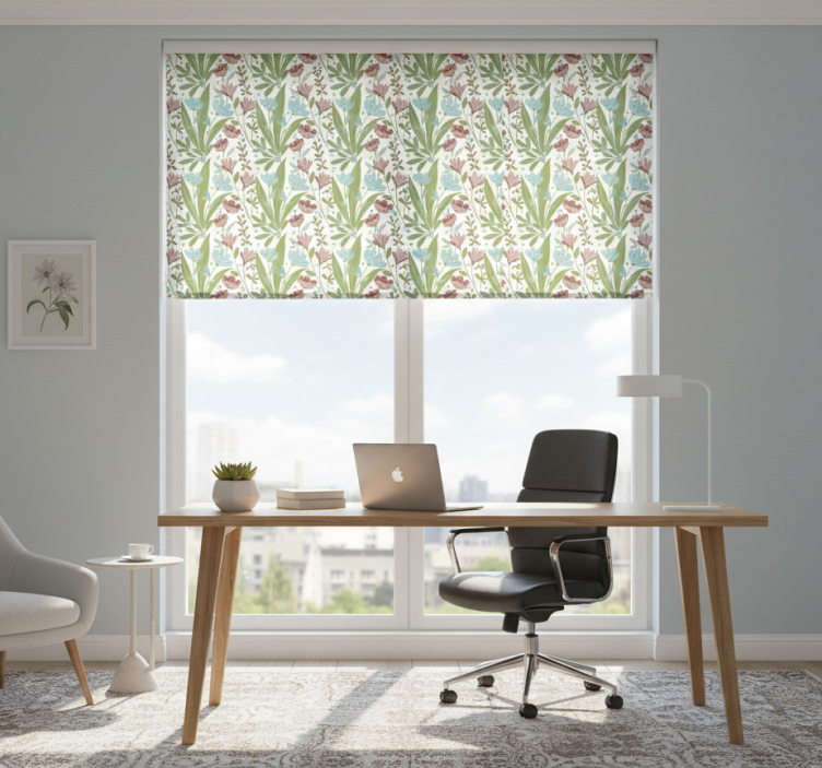 Rullegardin kontor i "bestemor chic" blomstermotiv