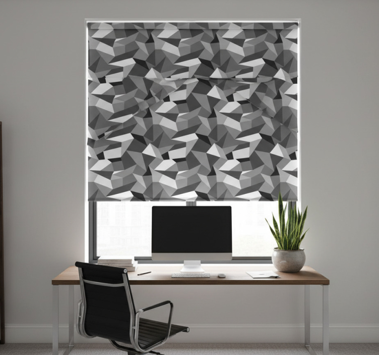 Oppdag den perfekte balansen mellom stil og funksjonalitet med vår rullegardin kontor i svart og hvitt med trekanter. Dette grafiske designet tilfører en moderne touch til ethvert rom, samtidig som det gir utmerket beskyttelse mot direkte sollys. Rullegardinen er enkel å rengjøre, og kan demonteres med bare to klikk, noe som gjør vedlikehold til en lek. Den gir også personvern når den er senket, og lar deg justere romtemperaturen etter dine behov. Med 100 % tilpassbare mål kan du finne den perfekte passformen for ditt kontor!