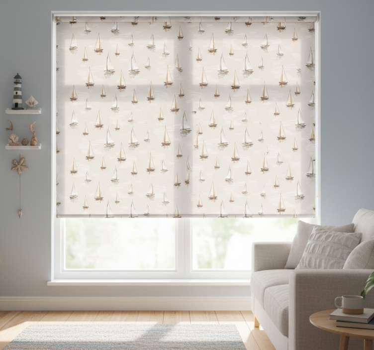 En Rullegardin moderne med elegant seilbåt mønster er ikke bare en praktisk løsning for solskjerming, men også en stilig dekorativ element i hjemmet ditt. Den tilfører en maritim følelse og skaper en avslappende atmosfære, perfekt for stuen, soverommet eller kontoret. Med sitt unike design kan den enkelt passe inn i enhver interiørstil, og samtidig gi en personlig touch. La denne rullegardinen bli et blikkfang i rommet!