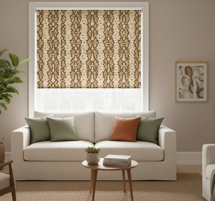 Referanse:: E7683Oppdag vår Rullegardin moderne med slangeskinnmønster, en perfekt kombinasjon av stil og funksjonalitet! Dette designet er både grafisk og iøynefallende, med en unik slangeskinnmønster som vil gi ethvert rom en moderne touch. Med enkel montering, lett rengjøring og muligheten for å tilpasse målene, er denne rullegardinen ideell for alle hjem. Den beskytter rommet mot direkte sollys og gir ønsket personvern når den senkes. I tillegg lar den deg regulere romtemperaturen og gir sikkerhet til huset, slik at du kan se ut uten å bli sett!