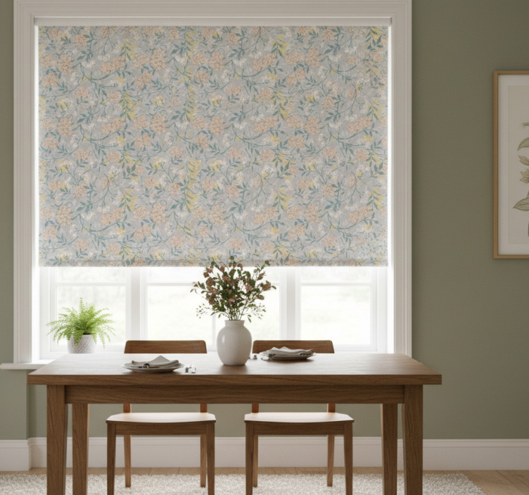 Rullegardin spisestue 80-talls blomster mønster