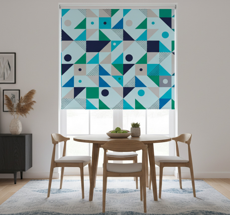 Rullegardin spisestue blå lappeteppe