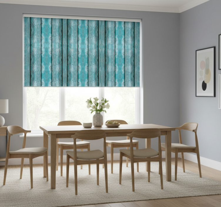 Rullegardin spisestue blå treverkseffekt