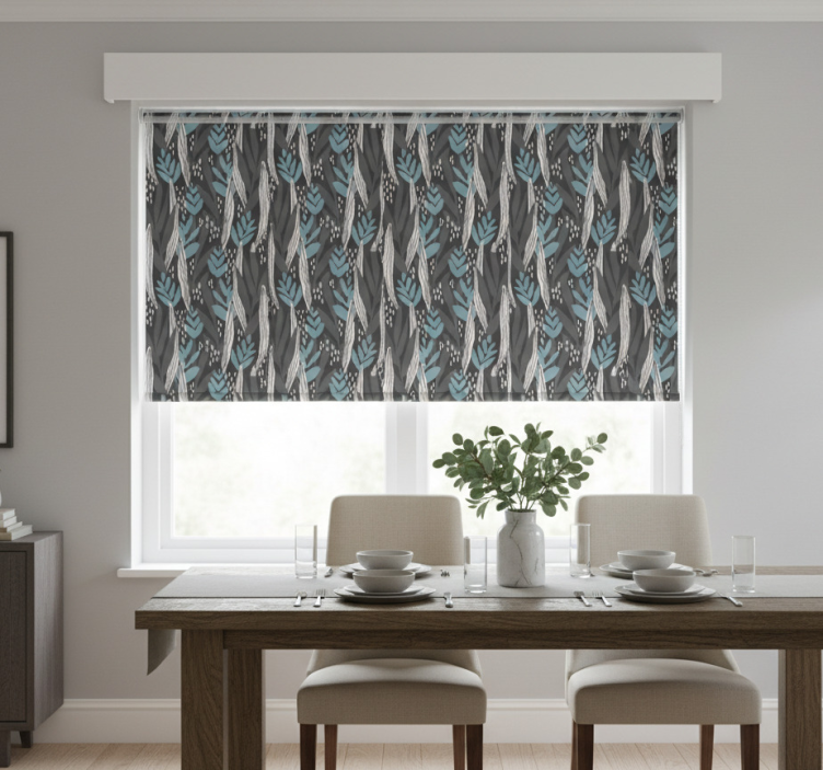 Rullegardin spisestue blomstregrå akvarell