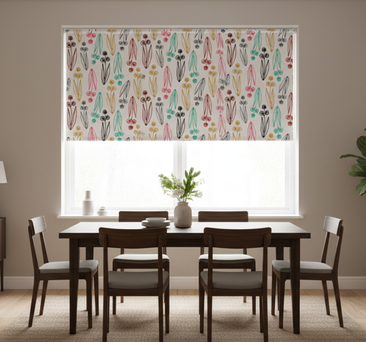 Rullegardin spisestue fargerike abstrakte linjer mønster