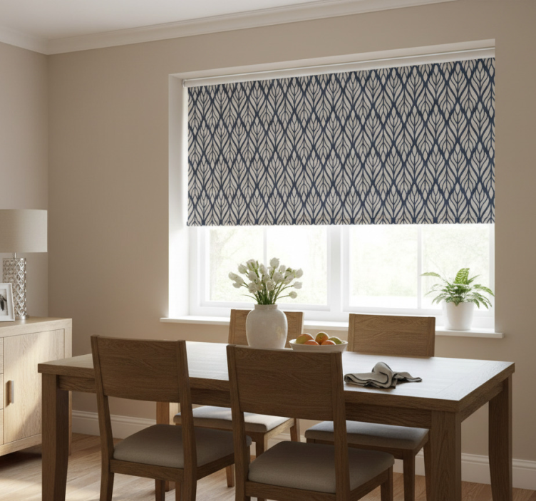 En Rullegardin spisestue glamour gråblå ornament rullegardin spisestue tilfører en unik sjarm til ethvert rom. Den er ikke bare funksjonell, men også en perfekt dekorativ detalj som kan heve stilen i spisestuen. Med dens luksuriøse design kan du skape en atmosfære av eleganse og komfort. La gardinen bli et blikkfang som komplementerer dine møbler og interiørdetaljer! Med denne rullegardinen kan du enkelt oppnå en harmonisk balanse mellom estetikk og praktisk bruk.